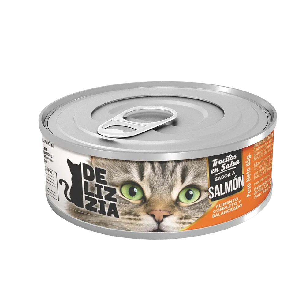 SALMON, Trocitos en Salsa, Comida para Gatos DELIZZIA